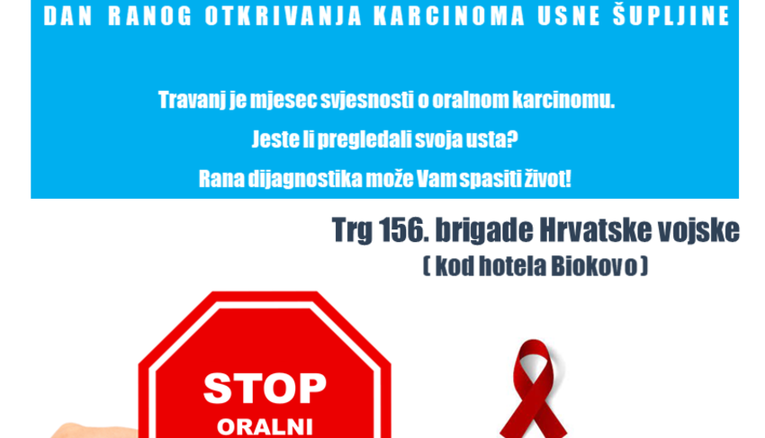 Travanj je mjesec svjesnosti o karcinomu usne šupljine, glave i vrata. Ove se godine prvi put obilježava i u Makarskoj i to u subotu 16. travnja od 9,00 do 13,00 sati na Trgu 156. brigade Hrvatske vojske (kod hotela Biokovo) u suradnji s Kliničkim bolničkim centrom Split i Medicinskim fakultetom u Splitu.