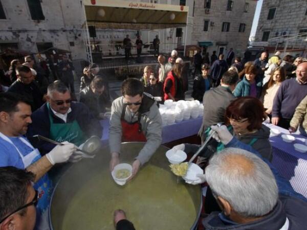 Badnjak u Božićnom gradu protekao je danas u pravoj blagdanskoj atmosferi – uz živu glazbu i bakalar iz radionice Marendina, te još jednu mega-božićnu čestitku kojom su djeca iz Makarske i okolice zaželjela sve najbolje za Božić i predstojeću Novu godinu. Dok je sve okupljene uživo zabavljao trio Big, članovi udruge Marendin pripremili su za ovu prigodu oko 500 porcija bakalara, a u proces su se tradicionalno uključili i predstavnici gradske vlasti – gradonačelnik Tonči Bilić, zamjenik Miroslav Družianić te predsjednica Gradskog vijeća Jagoda Martić navukavši pregače te dijelivši bakalar sugrađanima. Tijekom jutarnjeg programa predstavljen je i ovogodišnji rezultat rada stotina dječjih ruku u obližnjoj Radionici Djeda Božićnjaka, božićna čestitka koju su uz stalnu i strpljivu pomoć ‘teta’ Tine i Marine izradila djeca iz osnovnih škola i vrtića iz Makarske, Tučepi i Brela. Tradicija naduže božićne čestitke u Hrvatskoj nije iznevjerena ni ove godine – velika rola papira razvučena je od pozornice Božićnog grada sve do štekata kafića Zagreb, a komunalni redari zabilježili sumetrom još jedno obaranje rekorda – ukupna je dužina iznosila 207 metara čime su nadmašene i čestitke iz 2013. ( 197 metara) i 2014. (konačna brojka iznosila je 205 metara) godine. Vesela atmosfera u Božićnom gradu nastavljena je i u popodnevnim satima uz nastup Gradske glazbe Makarska.