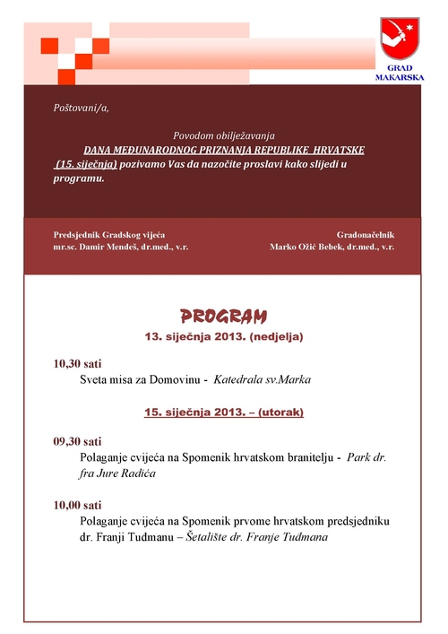 15. siječnja 1992. godine Republiku Hrvatsku, međunarodno je priznalo 12 zemalja Europske unije. Članicama Unije istoga dana istom odlukom pridružile su se Austrija, Bugarska, Kanada, Mađarska, Malta, Poljska i Švicarska. Prva država koja je priznala Hrvatsku bio je Island koji je ovu odluku donio još 19. prosinca 1991. Isti dan takvu odluku donijela je i Njemačka, ali je odluka stupila na snagu 15. siječnja, danom priznanja i ostalih članica Unije. Međunarodno priznanje Hrvatske dva dana prije Europske unije objavila je Sveta Stolica, a 14. siječnja San Marino. Prve zemlje koje su priznale Republiku Hrvatsku još u jesen 1991. godine bile su zemlje koje i same tada nisu bile međunarodno priznate - Slovenija, Litva, Ukrajina, Latvija i Estonija. Do kraja siječnja 1992. Hrvatsku je priznalo još sedam zemalja - Finska, Rumunjska, Albanija, Bosna i Hercegovina, Brazil, Paragvaj i Bolivija. Prva azijska i islamska zemlja, ne računajući Tursku, koja je priznala Hrvatsku bio je Iran, dok je od afričkih zemalja to bio Egipat. Hrvatska je potom, 22. svibnja iste godine, primljena u Ujedinjene narode, a do tada su je priznale i Rusija, Japan, SAD, Izrael i Kina. Od međunarodnoga priznanja do danas Republika Hrvatska uspostavila je 48 veleposlanstava, šest stalnih misija u raznim međunarodnim organizacijama, 23 konzulata, a održava diplomatske odnose s više od 120 zemalja svijeta.