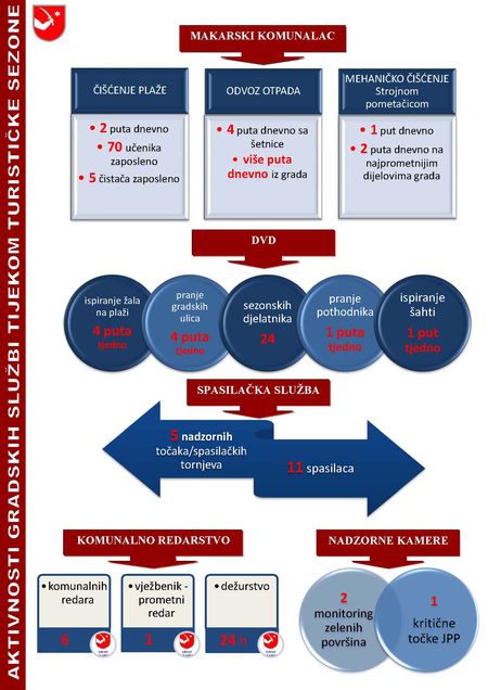 Prema podatcima Ureda makarske Turističke zajednice, jučer 23. srpnja 2012. u Makarskoj je boravilo 8931 turista. Ta činjenica traži dodatno pojačanje u poslovima održavanja javno-prometnih površina, plaže i frekventnih punktova našega grada. Gužve su na svakom koraku, osobito plaži i šetnici. Kako bi u gradu vladao red tijekom turističke sezone, sve gradske službe usmjerene su na održavanje čistoće, sigurnosti te javnog reda i mira.