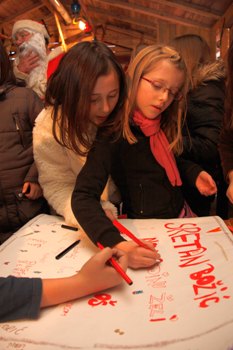 Radionica Djeda Božićnjaka svaki dan je sve veselija i proizvodi sve više prekrasnih rukotvorina izrađenih ručicama djece. Čestitke, anđeli, ukrasi za božićna drvca, pokloni, crteži i još svakakvi plodovi mašte proizvode se u našoj radionici, a sve pod budnim okom Djedice.