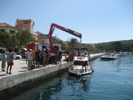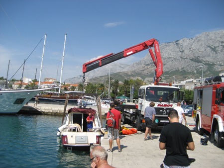Brod 'Tin Laura' marke damor furia, vlasnik ob. Tomić, sinoć je prilikom nevremena – garbinade potopljen u makarskoj luci. Brod je, naime, bio privezan na privezištu Marineta, a potopljen je oko 23,30 sati. Iz Gradskog centra Osejava Makarska dobili smo informaciju kako je more prelazilo u brod s krme te je na taj način i potopljen. Jutrošnjom intervencijom makarskih vatrogasaca, ronilaca i pauk službe brod je dovučen do glavnog mula gdje je ispumpano more, a akcija sanacije štete još je u tijeku.