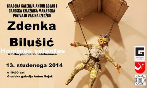 Povodom zatvaranja Mjeseca hrvatske knjige, Gradska knjižnica Makarska i Gradska galerija Antuna Gojaka pozivaju Vas na izložbu 'Homines volantes' Zdenke Bilušić u četvrtak 13. studenoga u 19,00 sati u Galerijia Antuna Gojaka. Riječ je o izložbi papirnatih padobranaca šibenske slikarice, spisateljice, ilustratorice i voditeljice Centra za vizualnu kulturu djece i mladih u Gradskoj knjižnici Juraj Šižgorić u Šibeniku.