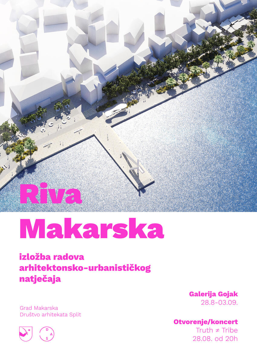 Grad Makarska i Društvo arhitekata Splita pozivaju vas na otvorenje izložbe Natječaja za izradu idejnog arhitektonsko-urbanističkog rješenja uređenja i urbane opreme gradske rive u Makarskoj u nedjelju 28. kolovoza u Gradskoj galeriji Antun Gojak u 20,00 sati.