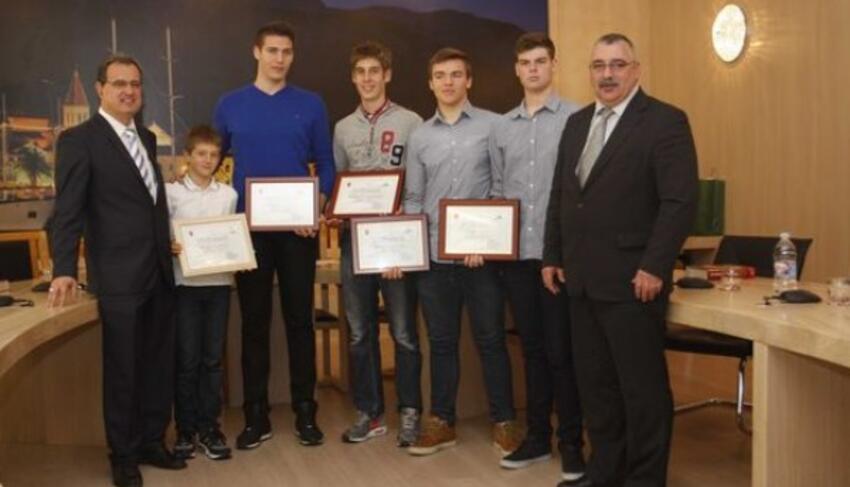 Nakon što su jučer primili delegaciju nogometne ekipe OŠ Stjepana Ivičevića, gradonačelnik Tonći Bilić i zamjenik Miroslav Družianić danas su uručili priznanja te u gradskoj vijećnici porazgovarali s članovima Veslačkog kluba Biokovo, koji je u kategoriji četverca ove godine doveslao do drugog mjesta na državnom natjecanju, ali i predstavnicima Biciklističkog kluba Makarska, čiji je mladi član Ivan Okmažić u svojoj kategoriji osvojio i prvenstvo i Kup Hrvatske. Time je nastavljena tradicija nagrađivanja uspješnih makarskih sportaša, kako su naglasili gradski čelnici, uz jasnu poruku da Grad promatra i prati njihov klupski razvoj i uspjehe. Tim su povodom uručeni prigodni pokloni, ali i posebna priznanja Ivanu Okmažiću s jedne, te veslačima Pašku Veli, Pašku Lukinoviću, Ivanu Šariću i Marku Andrijaševiću s druge strane. Kako je kazao zamjenik Miroslav Družianić, iako ne spadaju u kategoriju najmasovnijih sportova, i veslanje i biciklizam na svoj su način obilježili itekako sportsku povijest grada. – Veslanje je najstariji sport u Makarskoj, sam VK Biokovo osnovan je 1921. godine, u isto vrijeme kao i Zmaj i u pitanju je sport koji će uskoro proslaviti stotinu godina kod nas. S druge strane, biciklizam je također sport s dugogodišnjom tradicijom koji je u posljednjim godinama potaknuo čitav niz događanja i manifestacija, utjecao na kulturu neprometovanja automobilima, a Makarskoj donio i sudjelovanje na međunarodnoj biciklističkoj utrci – objasnio je Družianić. Obraćajući se biciklistima i veslačima, gradonačelnik Tonći Bilić zaključio je da, računajući današnja i jučerašnja primanja kao i sportske rezultate koji stoje iza njih, za budućnost makarskog sporta nema razloga strahovati. – Volio bih da svi vi maksimalno iskoristite svoj potencijal za rezultate koje će ostati zapisani u makarskom sportu, te se nadam da ćete biti upamćeni kao generacija koja je ostvarila velike domete. Jer, pred vama je još mnogo vremena za i učenje i za bavljenje sportom i vjerujem da ćete nastaviti pravim putem – dodao je Bilić.