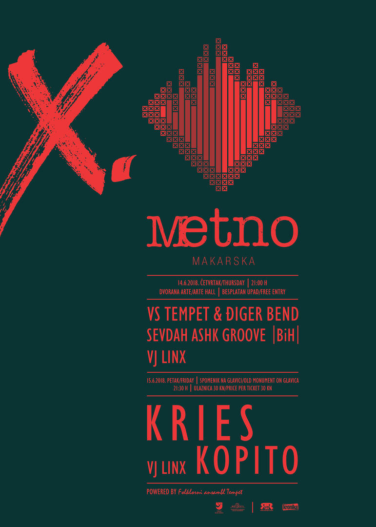 Festival će zatvoriti veterani Metna , svima već dobro poznati Kries, sedmeročlani bend osnovan 2002. godine koji nadahnuće pronalazi u melodijama i tekstovima tradicijskih napjeva, kao i u slavenskoj mitologiji, dinarskom ritmu i zvuku mediteranskih glazbala. Dosadašnjim djelovanjem Kries je prisvojio epitet najaktivnijih i najatraktivnijih predstavnika world music scene ovih prostora. Kries je prošle godine dovršio svoj treći album „ Selo na okuke „ te će makarska publika po prvi puta u živo čuti nove materijale kako frontmena Mojmira Novakovića tako i ostalih članova banda.