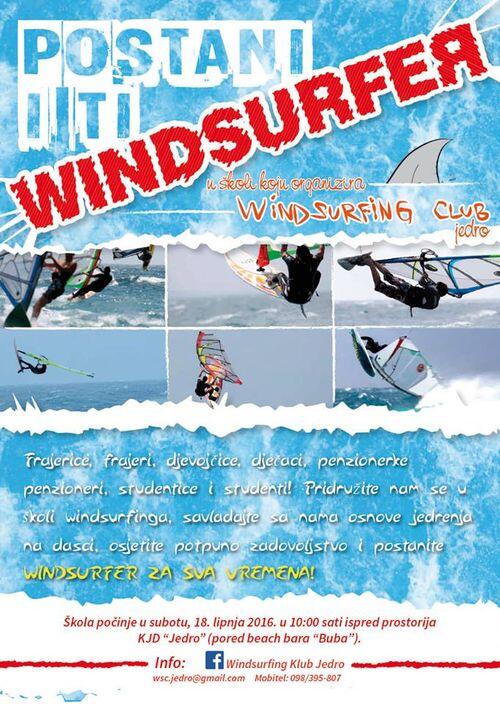 Klub za jedrenje na dasci Jedro organizira besplatnu Školu za jedrenje na dasci za početnike koju već treću godinu zaredom vode iskusni jedriličari na dasci. Prvi sat održat će se 18. lipnja u 10 sati ispred prostorija kluba, a obuhvatit će teoriju, upoznavanje opreme i uporabu simulatora na suhom te početničke vježbe u moru. Ovisno o broju zainteresiranih i njihovoj dobi formirat će se manje grupe s individualnim pristupom. Kako napominju iz KJD-a Jedro, osobe koje mogu pohađati školu ne smiju biti mlađe od 12 godina i moraju znati plivati.