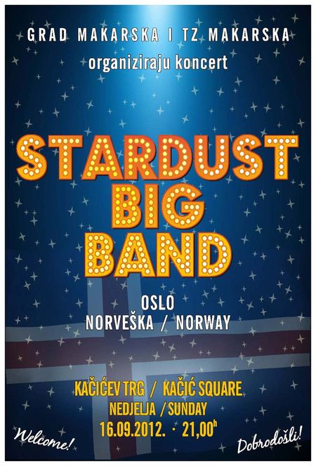 U nedjelju 16. rujna 2012. na Kačićevom trgu održat će se koncert Stardust Big Banda iz Osla (Norveška). Koncert počinje u 21 sat.