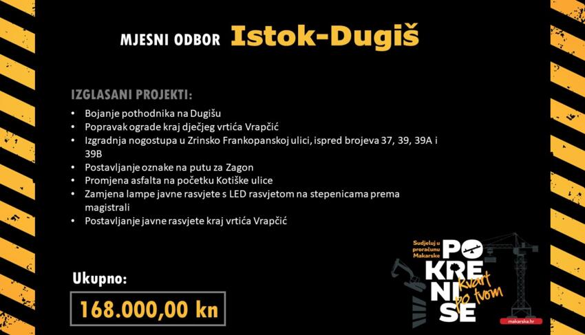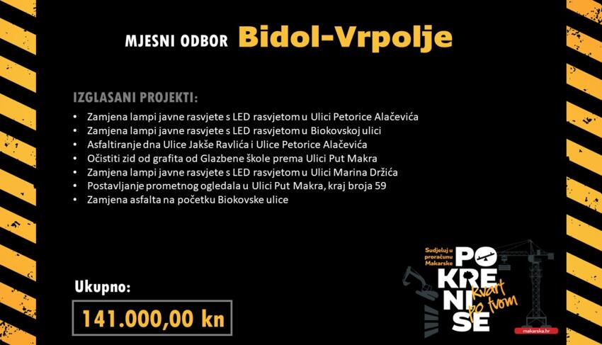 Mještani mjesnih odbora Ratac - Zelenka, Veliko Brdo, Istok-Dugiš, Centar, Bidol-Vrpolje, Plaža - Sinokoša i Bili Brig – Gorinka odlučili su koje će komunalne akcije biti prioritet u njihovom kvartu u 2023. godini te izglasali 45 projekata. Cjelokupan popis svih izglasanih projekata dostupan je na internet i web stranici Grada Makarske.