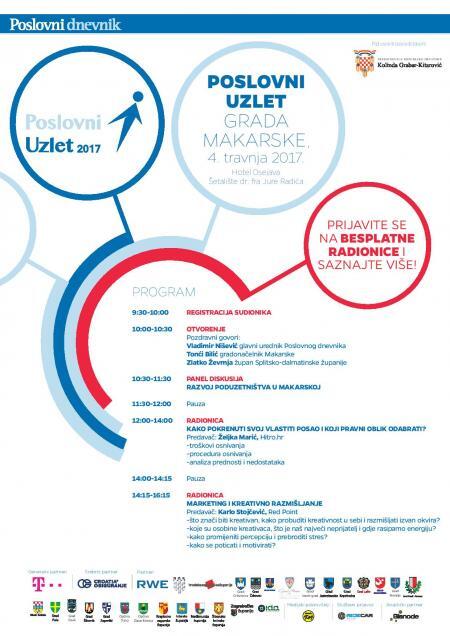 Makarska je po drugi put domaćin Poslovnog uzleta, manifestacije namijenjene malim i srednjim poduzetnicima, OPG-ovima i drugim zainteresiranim građanima željnih kontinuiranog usavršavanja poslovnih znanja i vještina. Poslovni uzlet Grada Makarske, u organizaciji Poslovnog dnevnika, održat će se u utorak 4. travnja 2017. u hotelu Osejava s početkom u 10:00 sati.