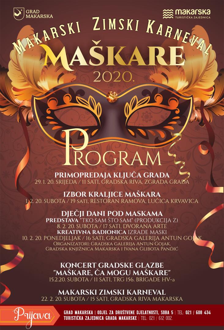 U subotu 15. veljače, u 11 sati, građane će svojim koncertom ''Maškare ča mogu maškare'' počastiti Gradska glazba Makarska, dok glavno događanje, ovogodišnji Makarski zimski karneval, slijedi u subotu 22. veljače.