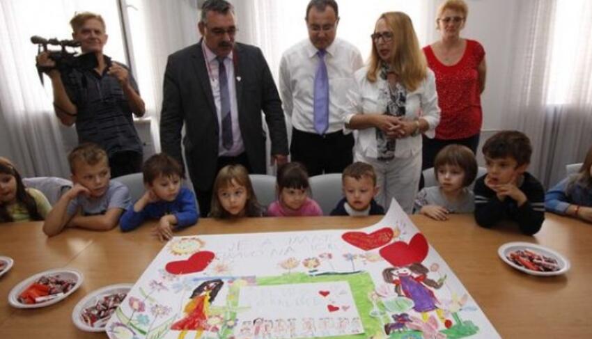 Dječjem veselju nije bilo kraja, zahvalili su pjesmom, i prihvatili poziv da svojim novim crtežom s motivom Makarske uljepšaju proslavu Dana grada Makarske.