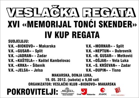 Memorijalni turnir TONĆI SKENDER održava se u spomen na poginulog hrvatskog branitelja, trenera Veslačkog kluba «Biokovo» pok. Tonćija Skendera već 16 godina. Okuplja veliki broj veslača i zaljubljenika u ovaj sport svih natjecateljskih kategorija.