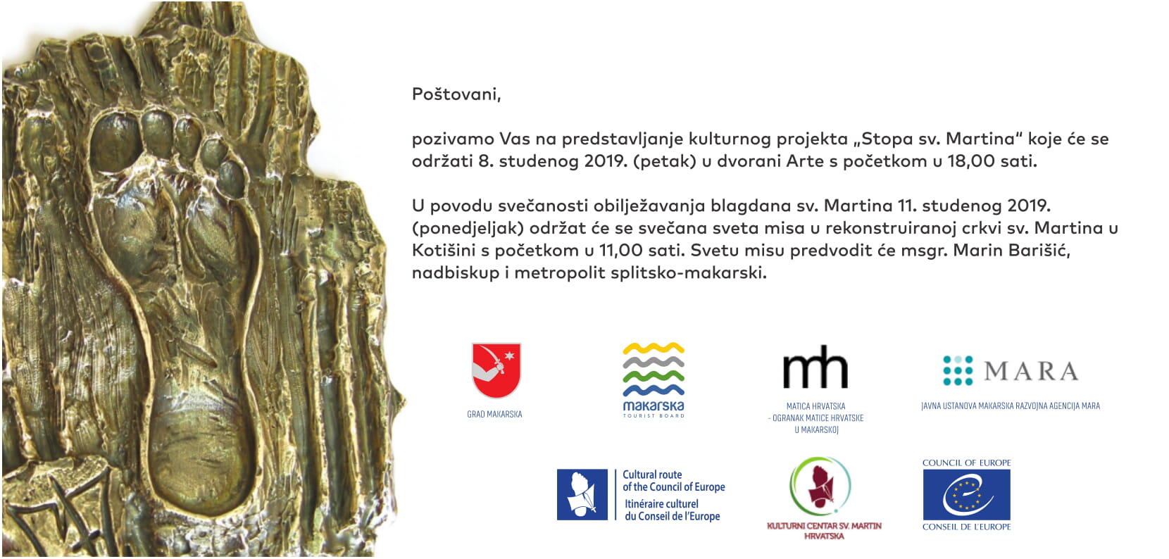 U suradnji s Kulturnim centrom Sveti Martin Hrvatska, ogrankom Matice hrvatske u Makarskoj, JU Makarska razvojna agencija - MARA, Turističkom zajednicom grada Makarske i Župom sv. Marka, a u povodu obilježavanja blagdana sv. Martina, Grad Makarska organizira predstavljanje kulturnog projekta „Stopa sv. Martina“.