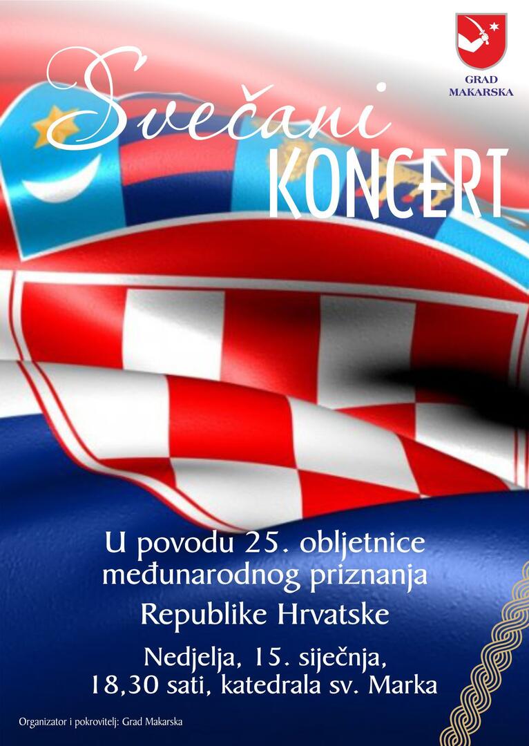 U katedrali sv. Marka u 18,00 sati služit će se svečana misa za Domovinu, nakon koje će u 18,30 sati započeti svečani koncert u povodu 25. obljetnice međunarodnog priznanja RH. U programu sudjeluju Muški zbor Franjevačkog samostana, Gradski zbor Makarska, Zbor umirovljenica Marineta, klapa Fjoret, klapa Garbin, Nada Sumić i Aleksandar Srzić, Tanja Puharić na mandolini, te Vojislav Malešević.