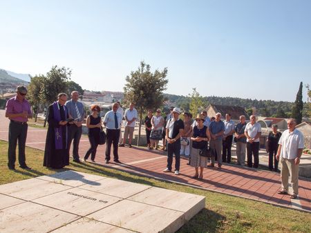 Zapalili su svijeće i položili vijenac i pred Spomenikom žrtvama II. svjetskog rata i poraća, gdje je don Pavao Banić molio oproštenje poručivši: „Ovi junaci vrijedni poštovanja i divljenja čija je vjera i ljubav prema Bogu, domovini i obitelj bila puno vrjednija nego li vlastiti život, neka budu nama putokaz. Neka njihova vjera i odlučnost za vrijednosti za koje su se žrtvovali živi u nama. Nastojmo i mi štovati vrijednosti za koje su oni živjeli i za koje su živote žrtvovali.“