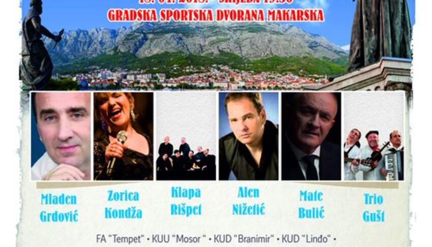 U srijedu 18. travnja, s početkom u 19,30 sati u Gradskoj sportskoj dvorani u Makarskoj održat će se javno snimanje emisije HRT-a ''Lijepom našom''. Među brojnim izvođačima, u ovom glazbeno-scenskom spektaklu nastupit će i Klapa Rišpet, Mladen Grdović, Zorica Kondža, Alen Nižetić, Tri Gušt i Mate Bulić, a svoj doprinos dat će lokalne klape i zborovi te gostujuće vokalne skupine i kulturno umjetnička društva.