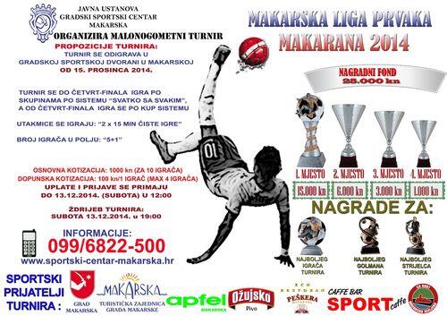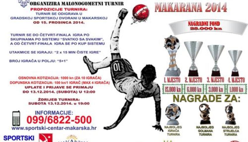 Danas(ponedjeljak) započinju događanja na tradicionalnom malonogometnom spektaklu, turniru Makarana, čije će se prve utakmice odigrati u Gradskoj sportskoj dvorani u večernjim satima. Cijena dnevne ulaznice je 10 kuna. Podsjetimo, ovo je ujedno i četvrto po redu izdanje Makarane, sam turnir ima nagradni fond od 25.000 kuna, a za trofeje se bore 32 prijavljene ekipe.