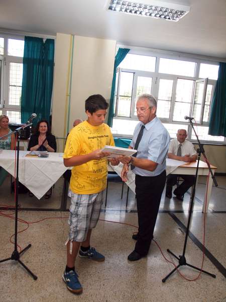 Čestitke je ravnatelj Nikola Andačić uputio svim učenicima, ali posebnu je pohvalu izrekao i knjige na dar uručio učenicima koje je Učiteljsko vijeće nagradilo za uspjeh 5,0 za sve godine školovanja i k tome uzorno vladanje. Nagrađeni su učenici Mihovila Ivanda, Đina Nola, učenice 8.a (razrednica Ida Vuletić); Ana Lalić, Ante Mladinov, Mario Vekić, učenici 8.b (razrednica Dragica Ivanda). Od svojih učenika - „malih maturanata“ - oprostili su se njihovi razrednici Ida Vuletić (8.a), Dragica Ivanda (8.b), Ljubo Šarić (8.c) i Davorka Soče (8.d). Učenike je ravnatelj Andačić posavjetovao da u srednjoj školi odmah prionu knjizi, jer pred njima su novi i teži izazovi, a prvi dojam je uvijek najvažniji u očima nastavnika.