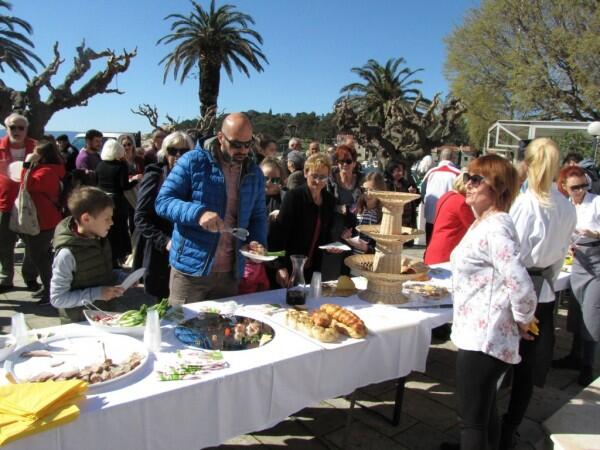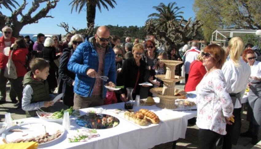 Brojni Makarani i gosti imali su u ponedjeljak priliku uživati u velikom uskršnjem doručku, koji je u organizaciji Grada i Turističke zajednice Makarske na Trgu 156. brigade HV-a okupio najbolje kuhare gradskih hotela i restorana te uz prigodni program privukao na stotine zainteresiranih posjetitelja. U pitanju je prvi ovakav događaj u sklopu obilježavanja Uskrsa, a sudeći po današnjoj atmosferi na gradskoj rivi, sigurno je da neće biti i zadnji. Kako je bilo i najavljeno, stolovi na trgu pored hotela Biokovo bili su spremni već od 10 sati ujutro, a izuzetno bogat meni treba zahvaliti vrlo jakoj kuharskoj selekciji – sudjelovali su Udruga kuhara Makarskog Primorja, Hoteli Makarska, hotel Miramare, hotel Biokovo, Sol Tourism Croatia, hotel Park Makarska, restoran Bura, restoran Peškera, konoba Kalalarga, Gastro Diva te hotel Osejava. Uistinu, teško je nabrojati čega se sve našlo u ponudi – od sirnica, šunke, pršuta, sira, inćuna, rotkvica i jaja, zasebno i u svakakvim maštovitim kombinacijama, od ukusnih slanih muffina pa do brojnih porcija rižota sa šparogama, u pitanju je bio uskrsni doručak kakvog se vjerojatno ne bi posramili ni u jednom klasnom hotelu. U prigodnom programu sudjelovala je i vokalna skupina FA Tempet, dok je goste u ime organizatora pozdravila direktorica TZ Makarske Hloverka Novak Srzić.