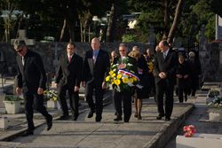 Gotovo svi koji su bili na Spomeniku hrvatskom branitelju posjetili su i Tuđmanov spomenik gdje su također položeni vijenci i zapaljene svijeće.