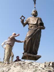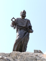 Spomenik Svetome Petru danas je u jutarnjim satima postavljen na svoje postolje, rt iznad diskokluba Grotta. Spomenik je visok 3,60 metara, a težak 900 kg. Djelo je akad. kipara Tomislava Kršnjavog, koji je Spomenik izradio u gipsu, a u bronci se lijevao u Ljevaonici Ujević.