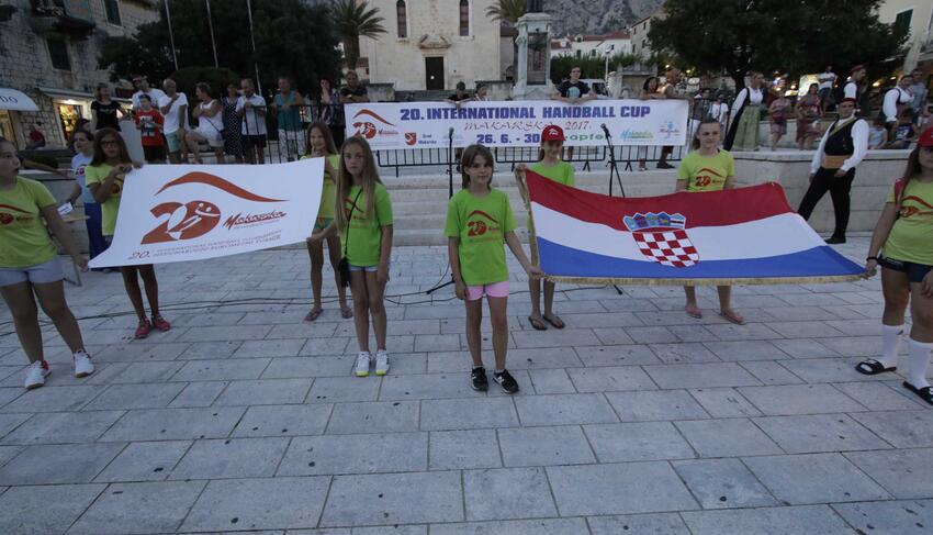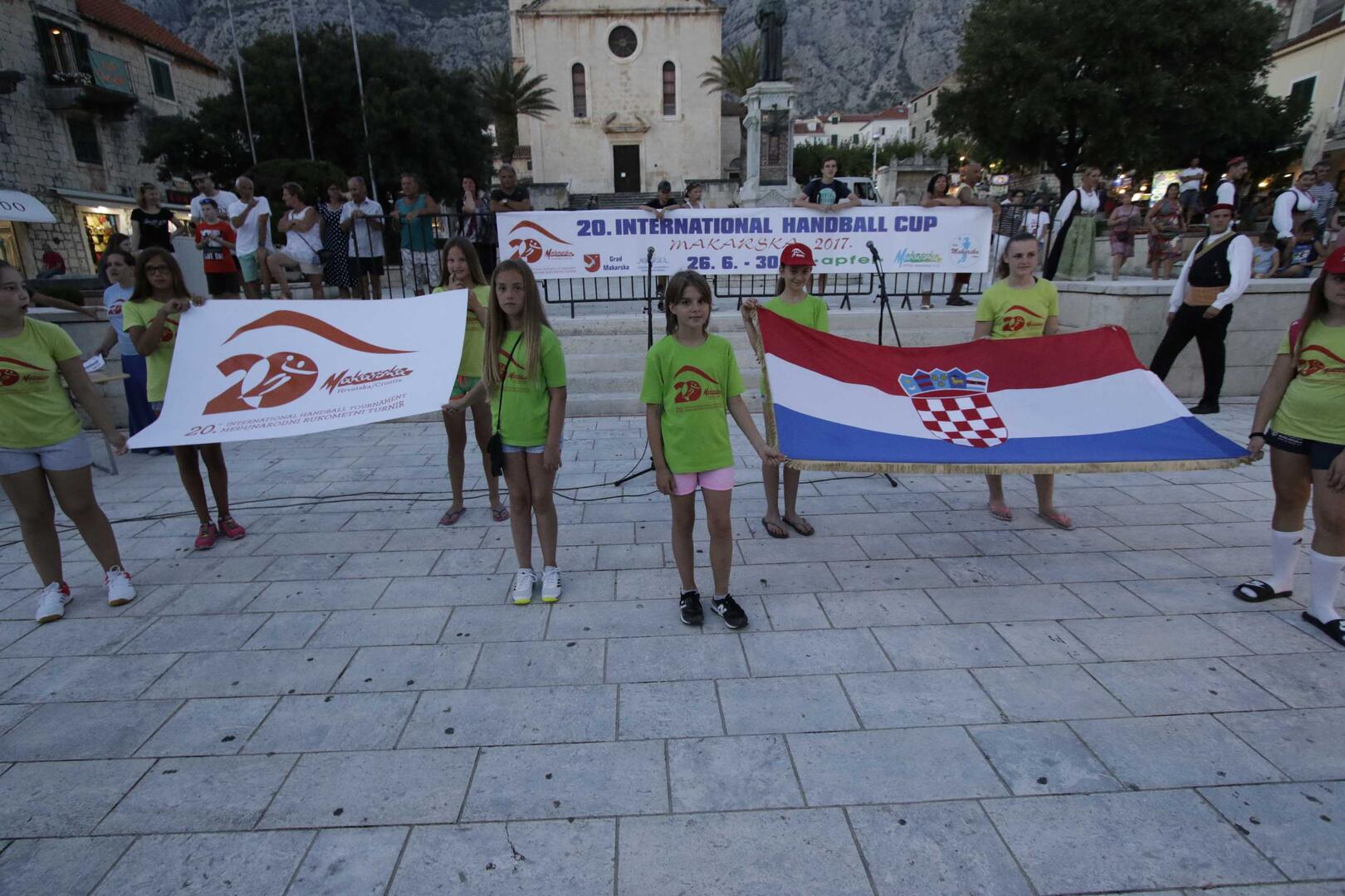 Uz svečani program te predstavljanje svih ovogodišnjih sudionika sinoć je na krcatom Kačićevom trgu otvoreno jubilarno 20. izdanje međunarodnog rukometnog turnira u organizaciji ŽRK Makarska. Najveća sportska manifestacija u gradu ove godine ugošćuje oko 1.500 sportaša iz 54 europska kluba, za natjecanje je spremno preko stotinu muških i ženskih selekcija, a lista zemalja odakle nam ove godine dolaze mladi rukometaši i rukometašice, uz Hrvatsku obuhvaća Austriju, Bosnu i Hercegovinu, Sloveniju, Mađarsku, Rumunjsku, Litvu, Latviju i Norvešku. Dok su prve utakmice odigrane još rano ujutro, službeno otvaranje turnira u večernjim satima održano je uz dozu spektakla – za uvod nastupom Gradske glazbe Makarska, a potom i zahvalama te priznanjima koja su dodijeljena u ime organizatora turnira, ŽRK Hoteli Makarska – zlatnom plaketom nagrađeni su Grad i Turistička zajednica Makarska, kao i član Rukometnog saveza ŽSD Stanko Rajković. Srebrene plakete dodjeljene su Helmutu Fajeru i Bruck Ammuru, dok su posebne nagrade uručene Gradskoj glazbi Makarska, Rukometnom savezu ŽSD i RK Ribola Kaštela. Turnir je službeno otvorio zamjenik gradonačelnika Dražen Nemčić čestitavši domaćinu na još jednoj uspješnoj organizaciji turnira, a okupljeni na Kačićevom trgu mogli su osim toga uživati i u nastupu makarskog FA Tempet. Nakon ceremonije otvaranja dio uzvanika preselio se na gradsku plažu, gdje je u prostoru Bounty bara održan party dobrodošlice za trenere.