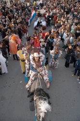 Već nešto poslije 14 sati, kada je započelo okupljanje i nakon 15 sati kada se povorka formirala, dalo se naslutiti da će ovo uistinu biti jedan veliki i lijepi karneval kakav Makarska zaslužuje. Gotovo trideset maškaranih skupina i više od 600 sudionika, od Slovenke Mojice i društva iz njene kavane, preko vila, transvestita, kauboja, mađioničara, likova iz stvarnog života, crtića ili mašte, do brišćanskog HNK-a redom su se penjali na centralnu pozornicu Svjetskog rupometnog prvenstva, smještenu u Areni Gradske rive. Tu su ih čekali voditelji komentatori Šala i Dominik. Uzavrelu atmosferu među publikom komentirala je MAna, dok je zvijezda večeri bila i ostala Zimona. Na svako traženje publike Zimona je ponovo izvodila svoj posljednji hit, pjesmu Lova.