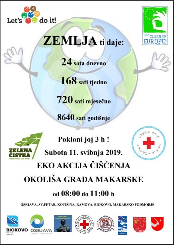 Riječ je o velikoj ekološkoj kampanji koja se, u sklopu međunarodnih ekoloških akcija World Cleanup, trebala održati u dva dijela: 4. i 11. svibnja. No, zbog lošeg vremena, prošle subote odgođena akcija čišćenja okoliša u sklopu "Let's do it World!" nacionalne akcije "Zelena čistka" održat će se sutra, na isti dan kada i čišćenje podmorja u sklopu ''Let's clean Europe!'' nacionalne akcije ''Crveni križ u plavom okviru''.