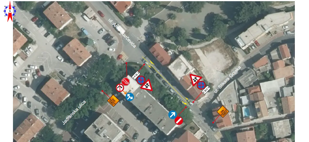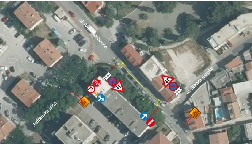 • Radi rasterećenja prometa i lakšeg izlaza na magistralu, Ulica Ante Starčevića, od Doma za starije i nemoćne do Jadranske ulice, bit će privremeno dvosmjerna u dužini od 50 metara, čime će se preko Ulice slikara Gojaka omogućiti izlaz na DC8