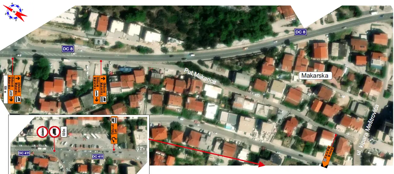 Promet se preusmjerava preko državne ceste DC8 (Dubrovačka ulica), pa dalje prema Ulici Stjepana Ivičevića.